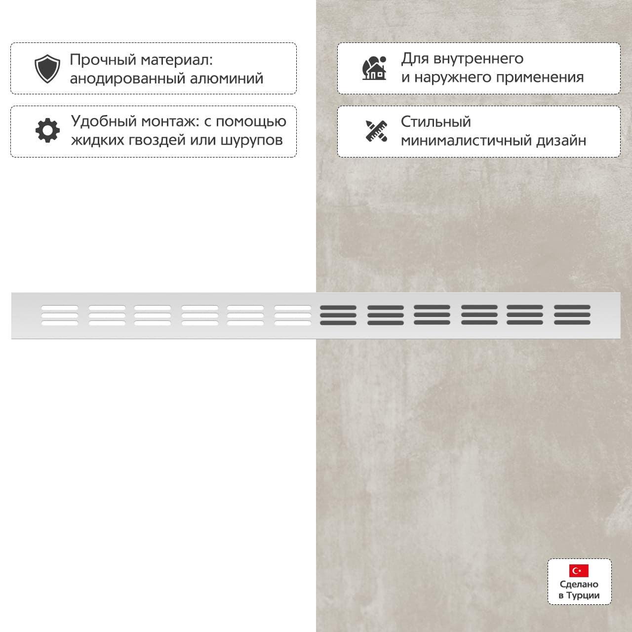 Прямоугольная вентиляционная решетка изготовлена из анодированного алюминия.