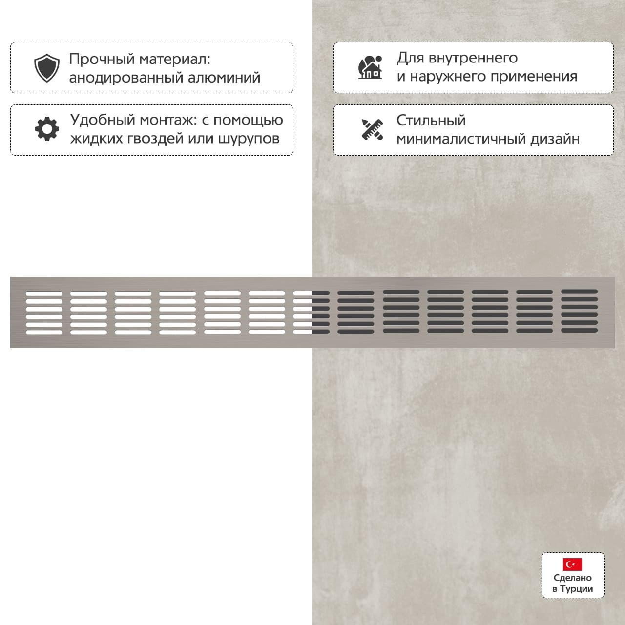 -Вентиляционная решетка Благовест 60x500, матовый метал