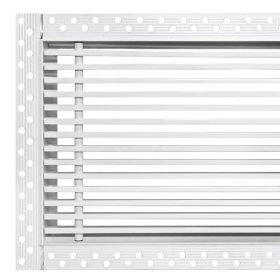 Данная решетка подходит для монтажа на любую поверхность под финишную отделку. Рама оснащена «полкой» 1,9 мм и рифлеными краями для большей адгезии финишного материала – шпатлевки, цемента. Решетка имеет съемную центральную часть с декоративным экраном. Она крепится к корпусу прочными металлическими тросиками, легко снимается для очистки и удобного обслуживания.